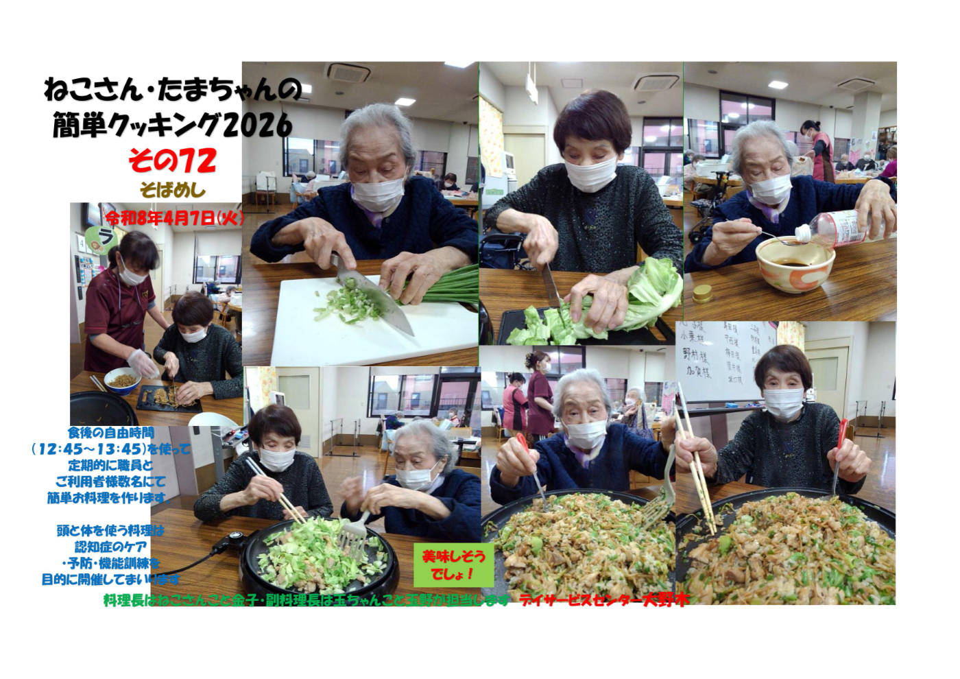 デイサービスセンター大野木 クッキングでそばめしが大好評!