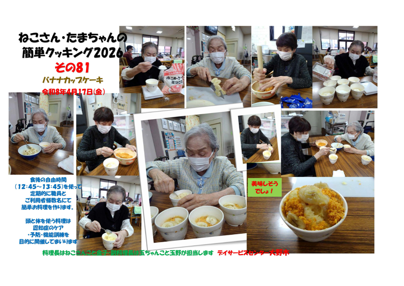デイサービスセンター大野木 クッキングでカップケーキ