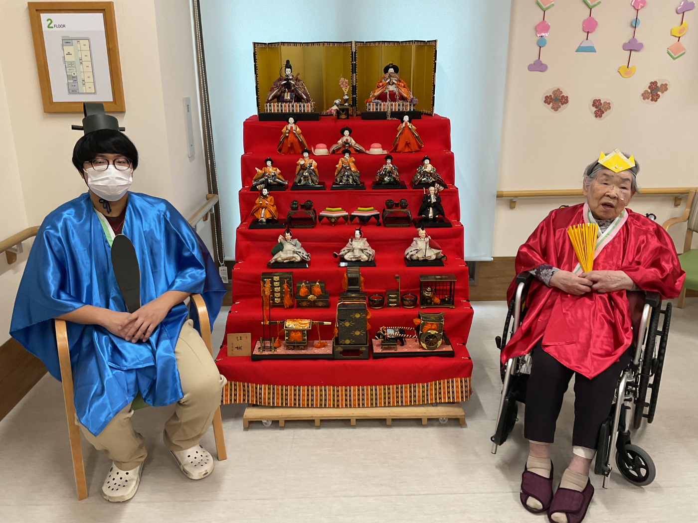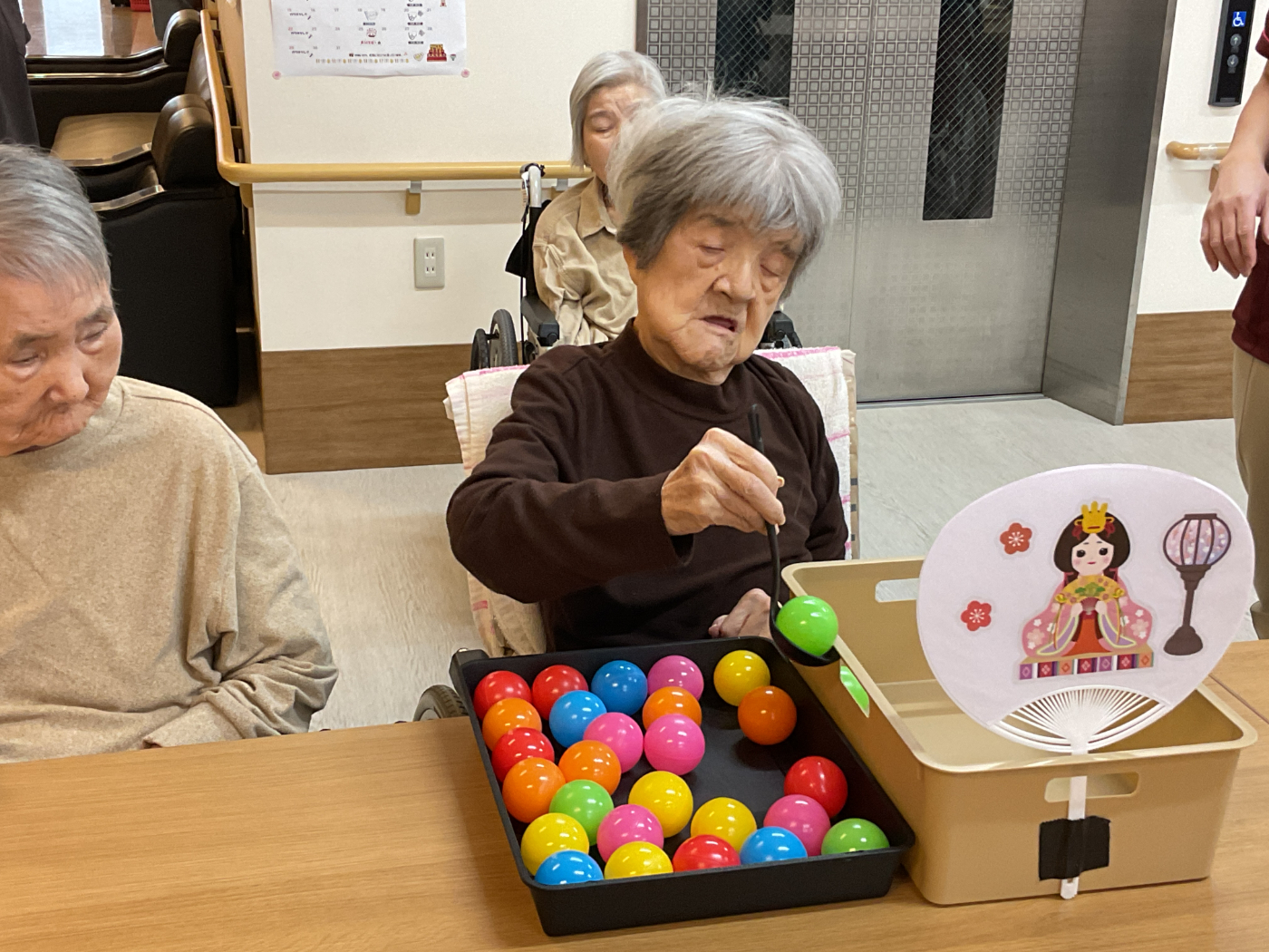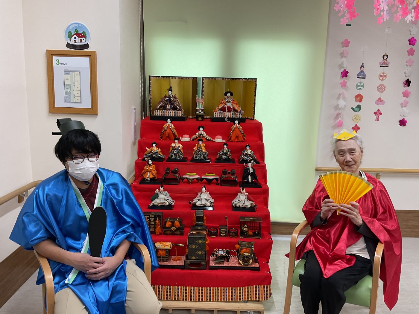 3月3日は、ひな祭り行事を開催しました。 ひな祭りゲームを楽しみ、記念撮影もしました♪ おやつには、ひなあられ、ロールケーキ、甘酒を召し上がって頂きました。 「ひなあられ、美味しい」や「甘酒はめったに飲めないから、いいね」と皆さんに楽しんで頂けたのではないかと思います。 七段飾りのひな人形も、最近ではめったに見かけなくなりました。今後も大切に保管し、毎年皆さんと楽しめるといいなと思っています。