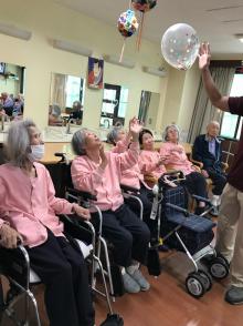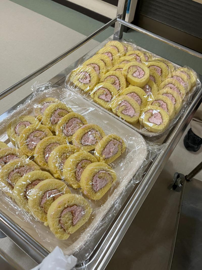 3月の誕生日の方をお祝いしました。3月誕生の方には職員より誕生日カード、入所者様からはバースデイソングのプレゼントが送られます。皆さんと風船バレーを楽しまれた後は手作りのロールケーキを頂きました。苺のクリームがたっぷり入っていて大好評でした。ケーキが食べれない方には苺のプリンを提供しました。