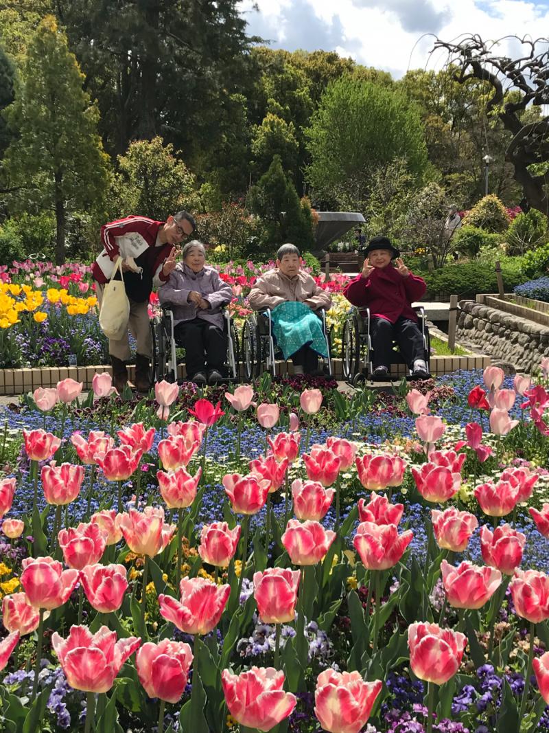 名城公園に行楽に出かけました。チューリップや春の花の見事な花壇に皆さん感動され「こんな素敵な所に連れてきてくれてありがとう。嬉しい。」と言われ春を満喫されました。