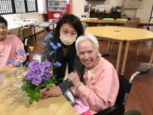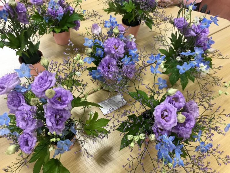 今回のお花は色がとても素敵で皆さん見本を見ると綺麗だね!楽しみだねと言われ各々に自分らしい作品ができました。