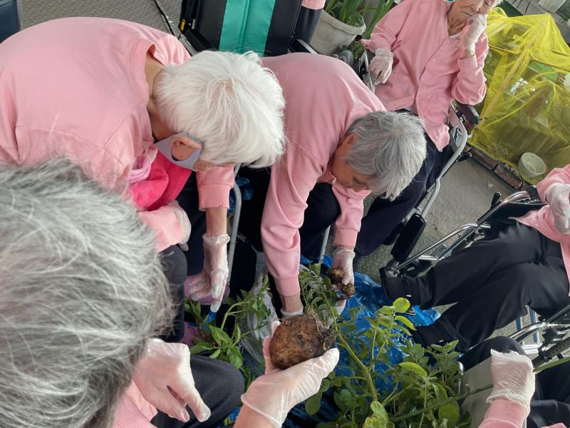 屋上菜園でジャガイモとプチトマトを収穫しました。皆さん楽しそうに収穫をして施設長に見せに来てくれました。