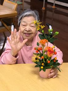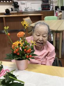だんだん秋が近づいてきているようです。お花を楽しみながら一足早い秋を感じることができました。先生にアドバイスをもらいながらそれぞれ素敵な作品が出来上がりました。
