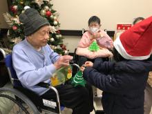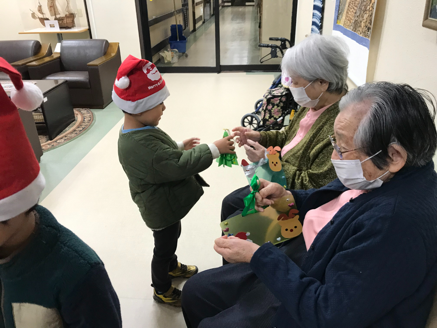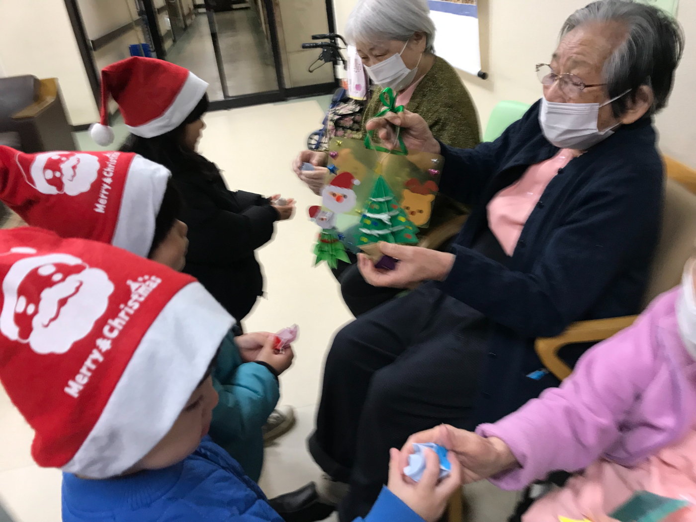 可愛いサンタさんが素敵なプレゼントを届けてくれました。インフルエンザが流行しているようでプレゼント交換だけになってしまいましたが皆さん園児の可愛らしさにメロメロでした。リーゴ五才美保育園の皆さんたくさんのプレゼントをありがとうございました。