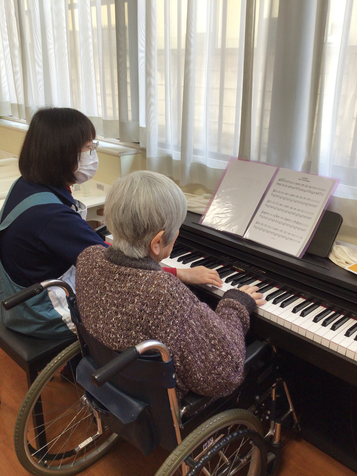 入所者さんも久しぶりにピアノを弾いて喜んで涙していました。