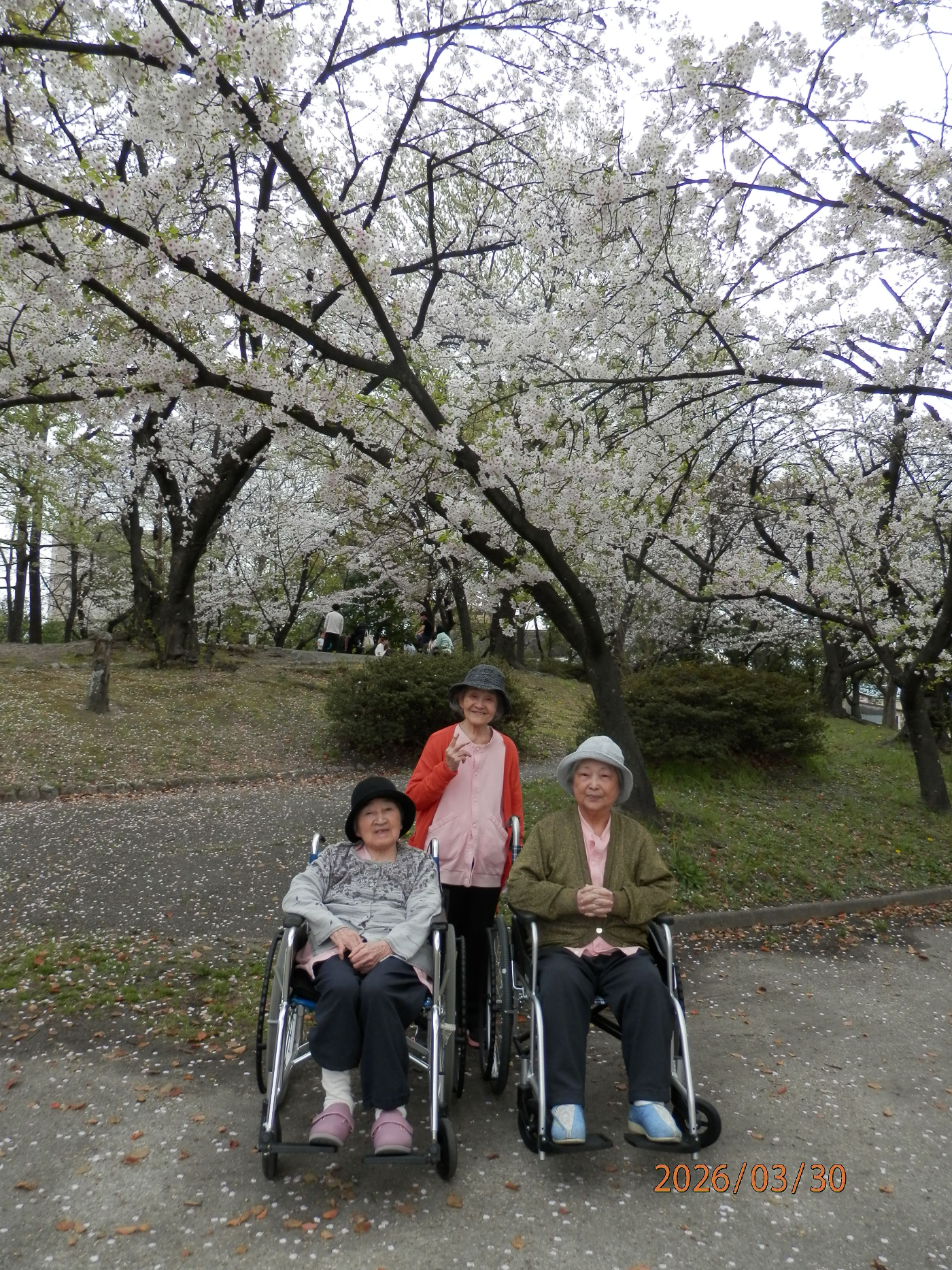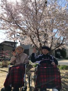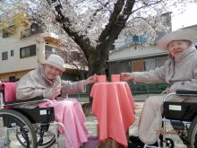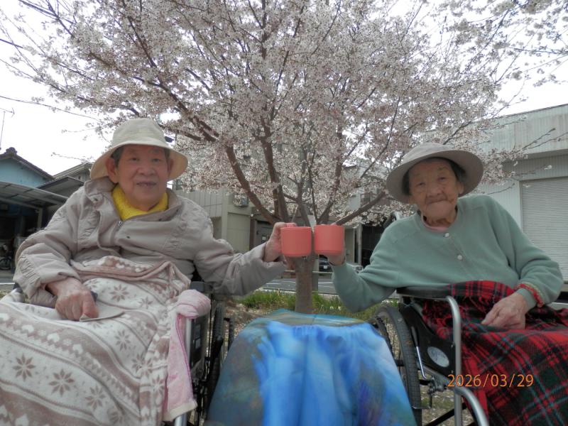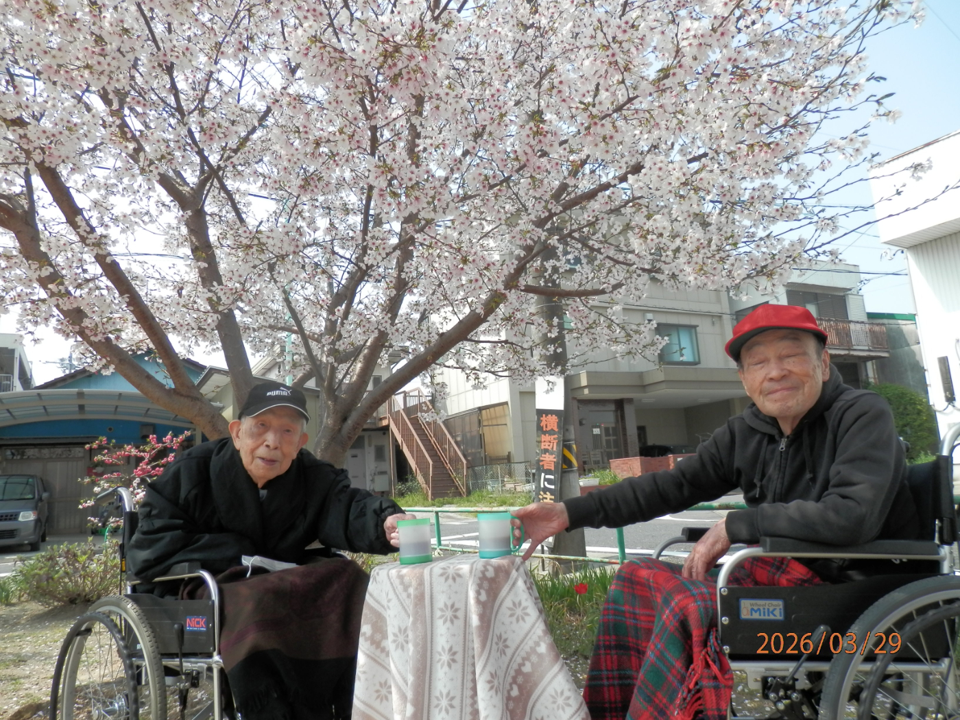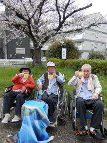 桜の花の下でジュースを飲みながら暖かい春の日を過ごしました。