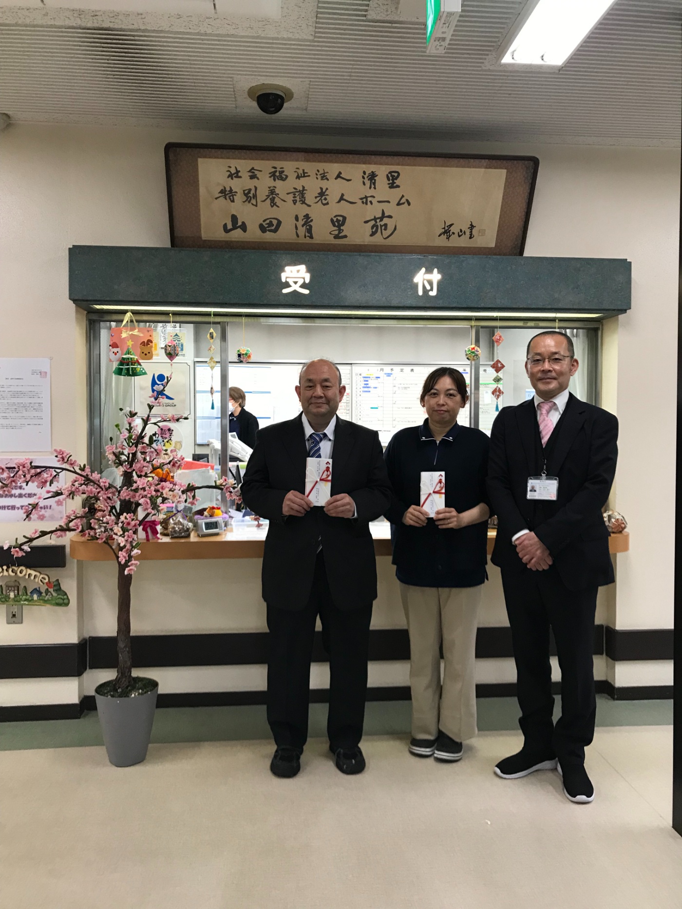 桜も満開に咲き新年度を迎え、永年勤続の表彰が行われました。たくさんの方に助けていただきながら楽しく働かせていただいています。これからも笑顔で皆さんのお役に立てるように頑張りますのでよろしくお願いします!